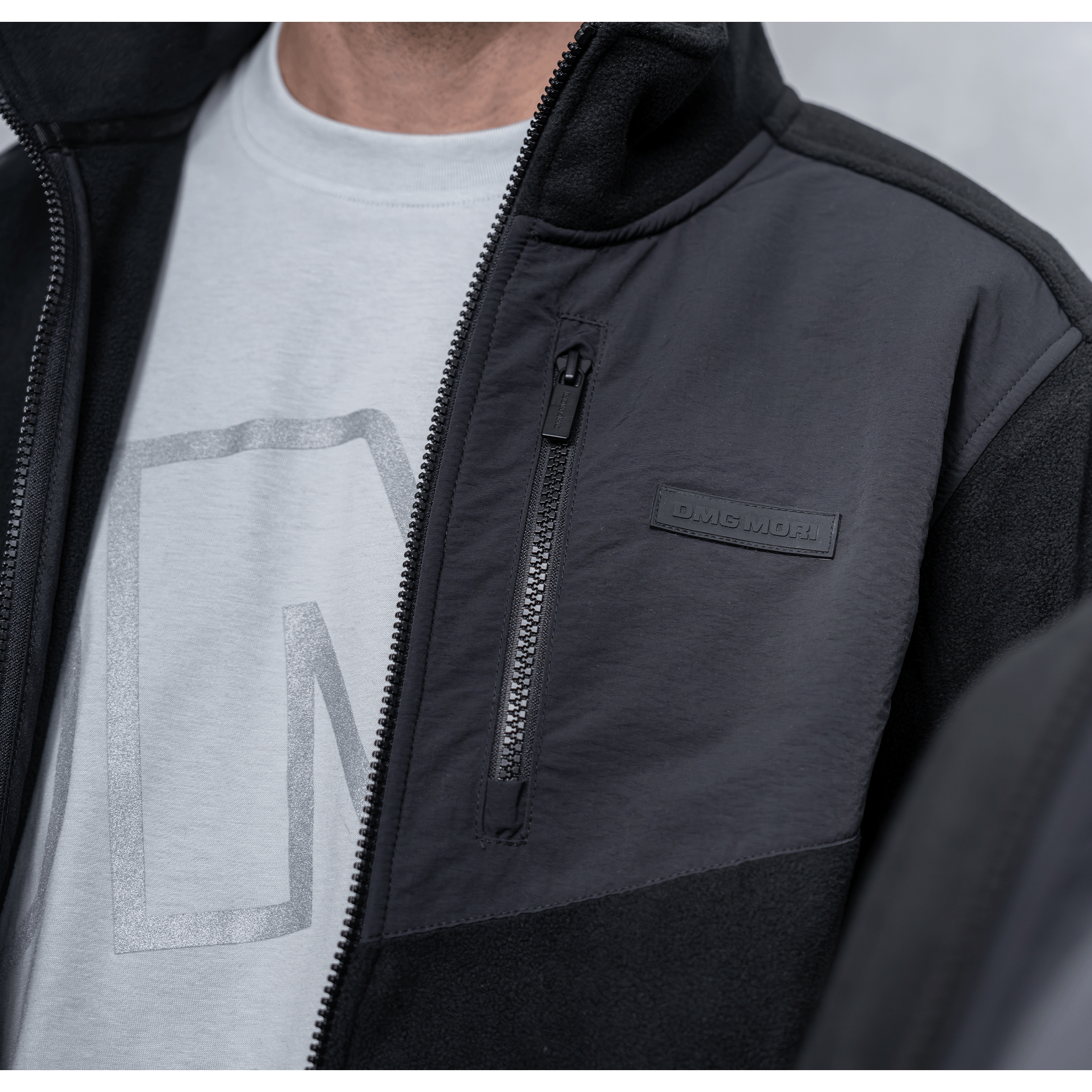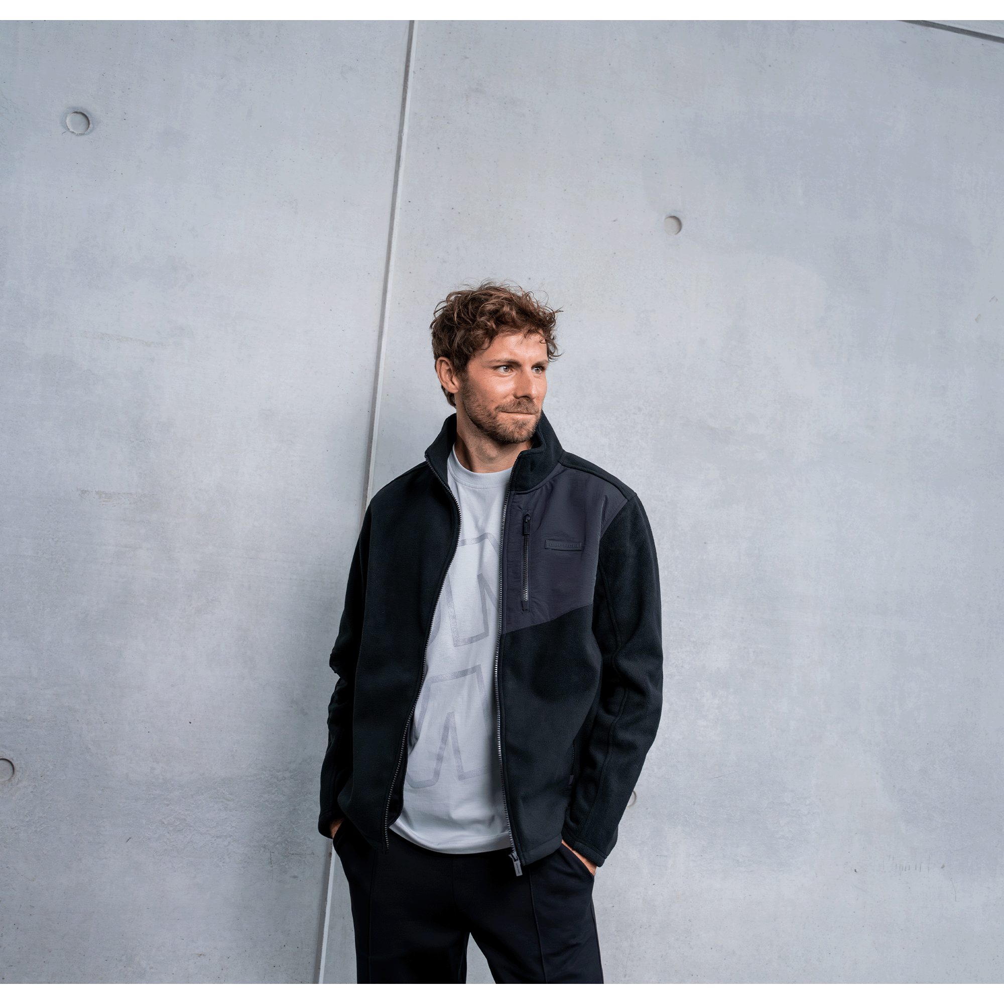 Functional fleece jacket with a modern stand-up collar and clean technical lines. The breathable, slightly elastic material ensures lasting comfort and maintains its shape over time. Striking zippers and contrast fabric details at the chest and sleeve give it a sporty, technical look.