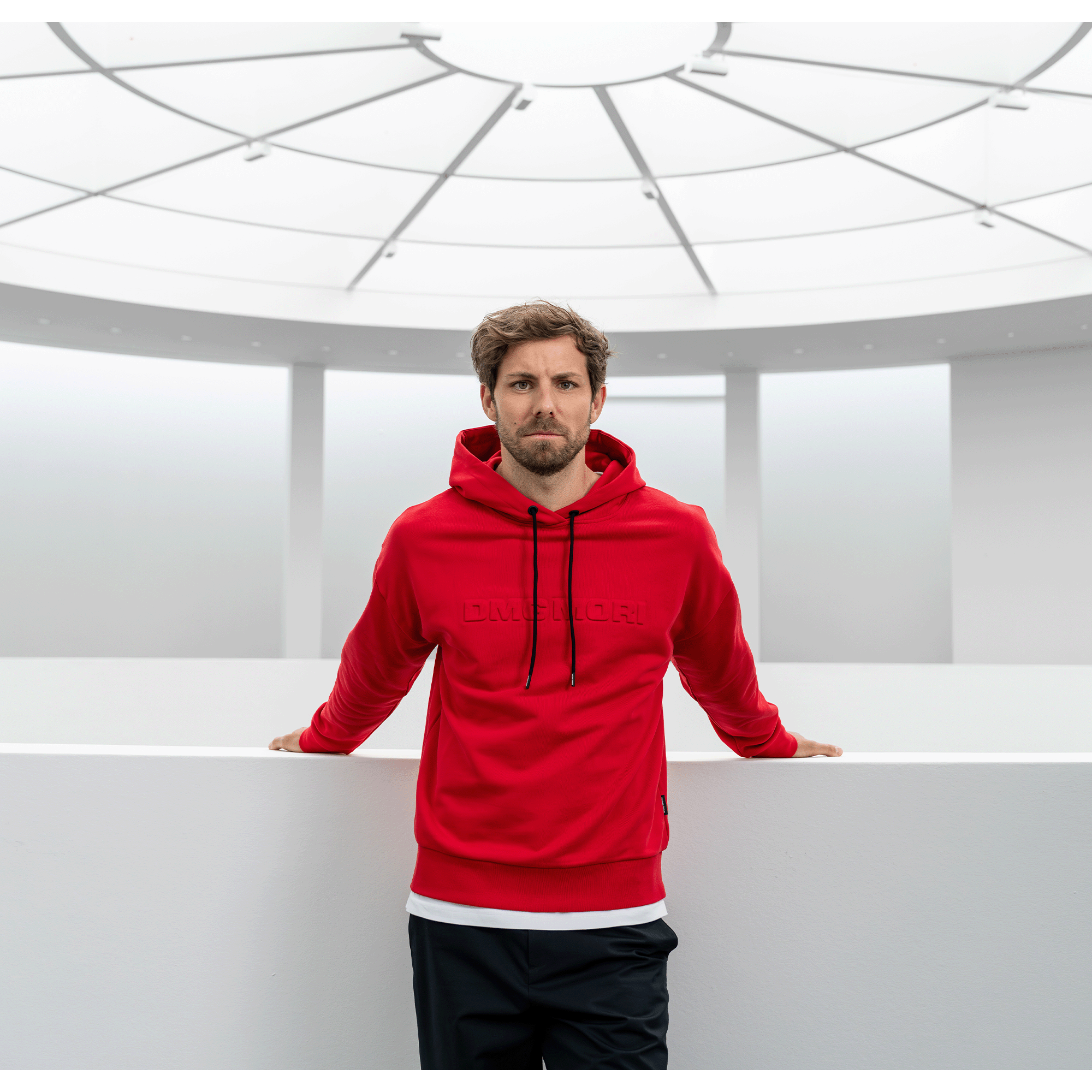 Casual unisex hoodie with a slightly oversized fit, made from soft and comfortable 100% organic cotton, featuring a subtly embossed DMG MORI logo on the chest.
