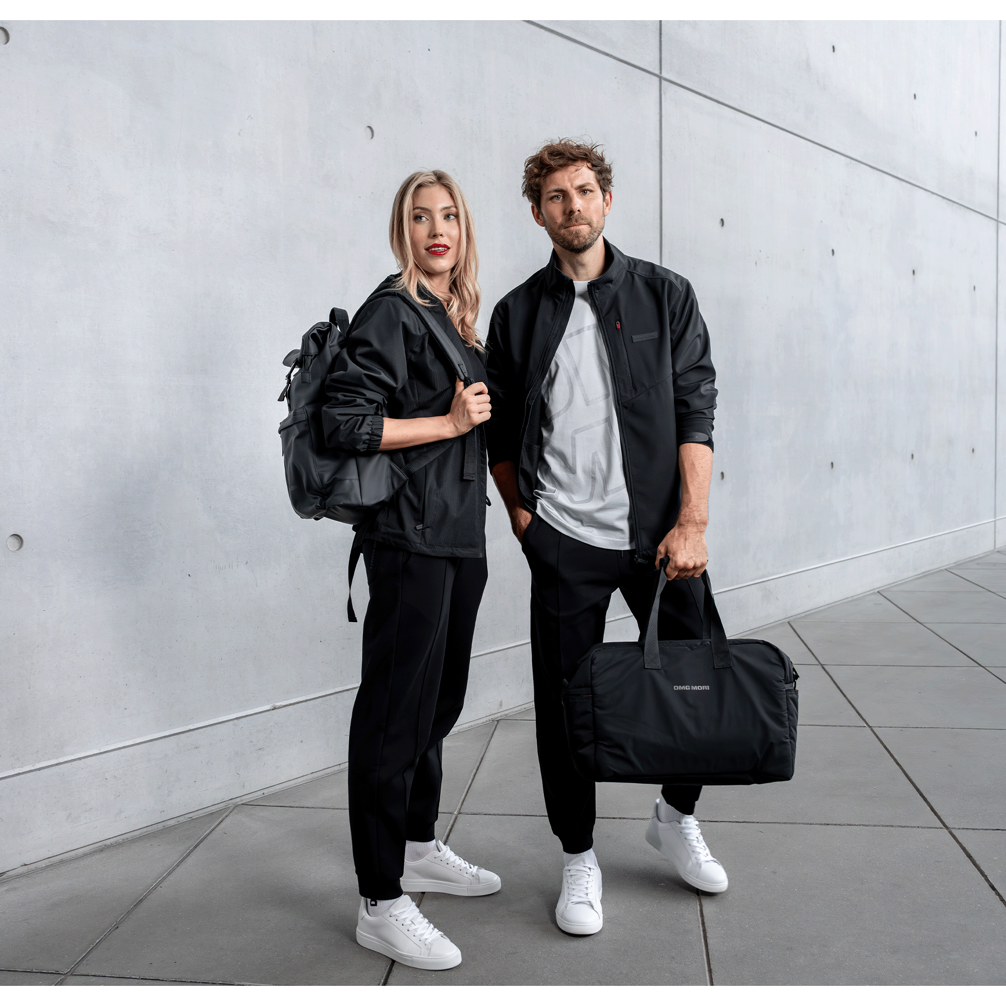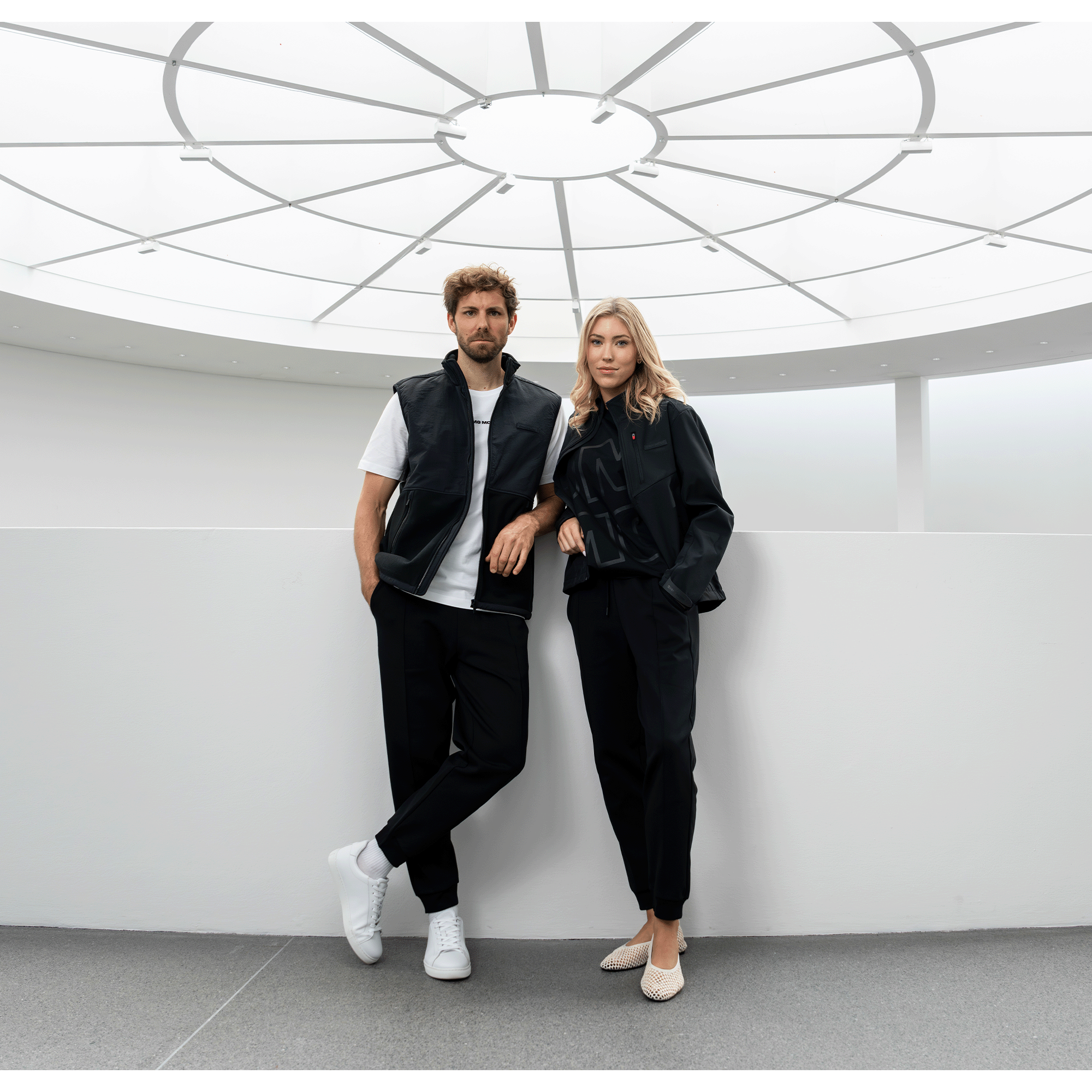 Premium interlock jogpants with a clean, straight cut and adjustable drawstring waistband. Front pintuck seams create a refined, subtly formal appearance. Finished with a discreet logo pocket at the back for a minimalist yet functional look.