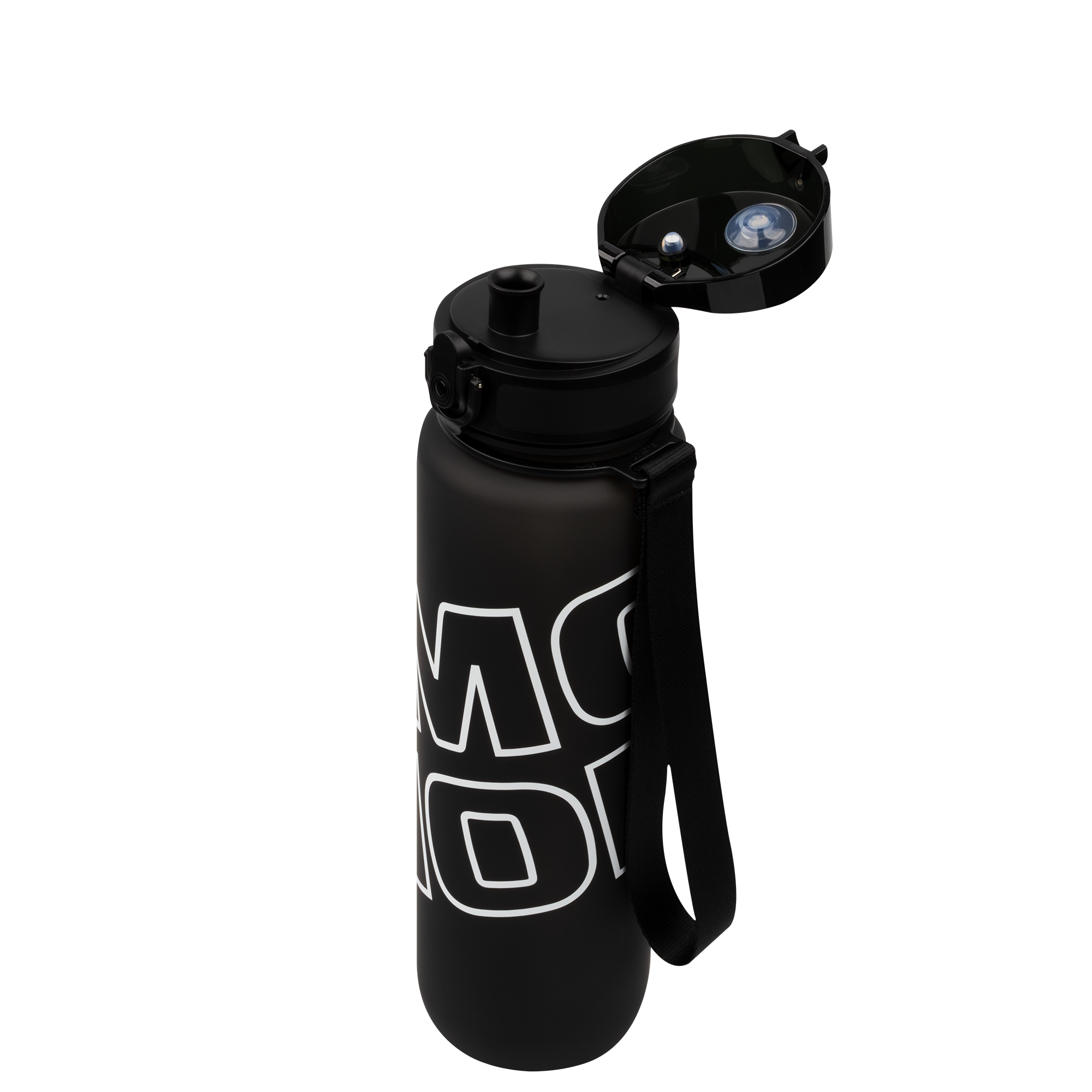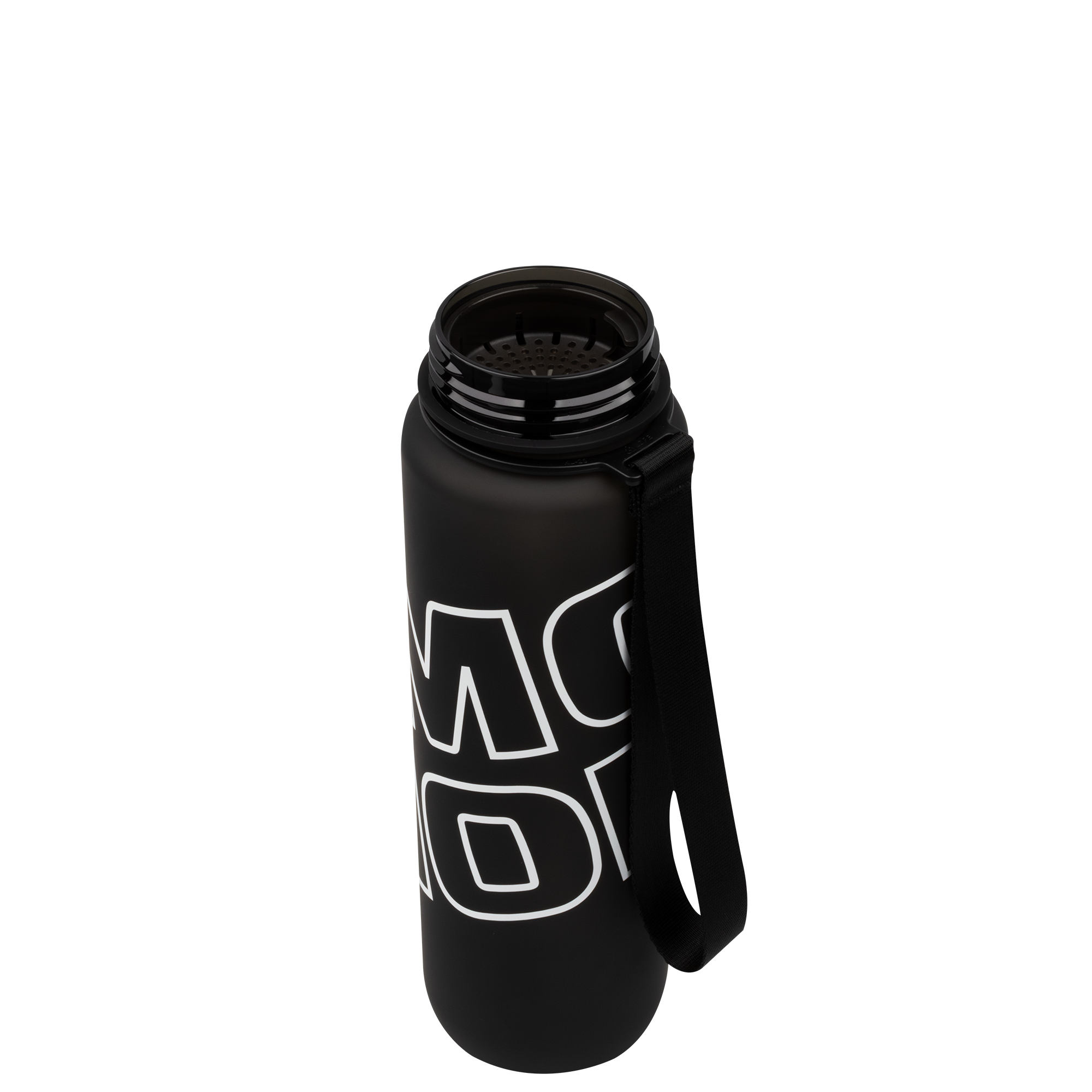 Durable 1-liter water bottle made from high-quality, PPT-free Tritan. Lightweight, taste-neutral, and impact-resistant—ideal for everyday use and workouts. Features an integrated filter insert, a convenient carry strap, and a clean design highlighted by a tonal bold logo outline.