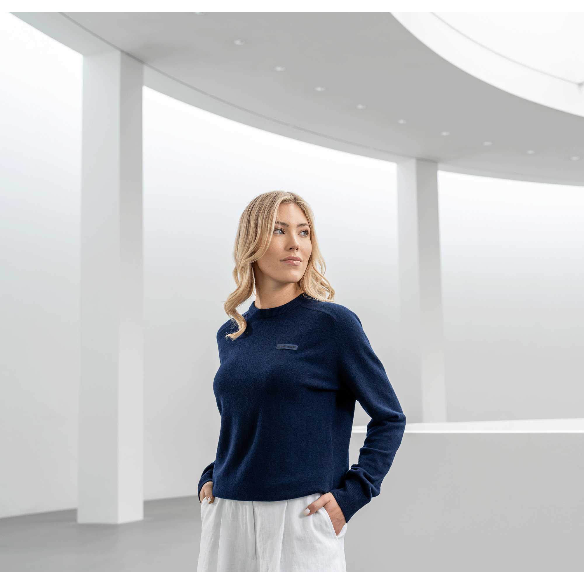 Set kombinuje svetr z cisté merino vlny s mekkým materiálem a nadcasovým designem. Diskrétní logo na hrudi doplnuje vzhled – ideální pro každodenní nošení nebo do kanceláre.