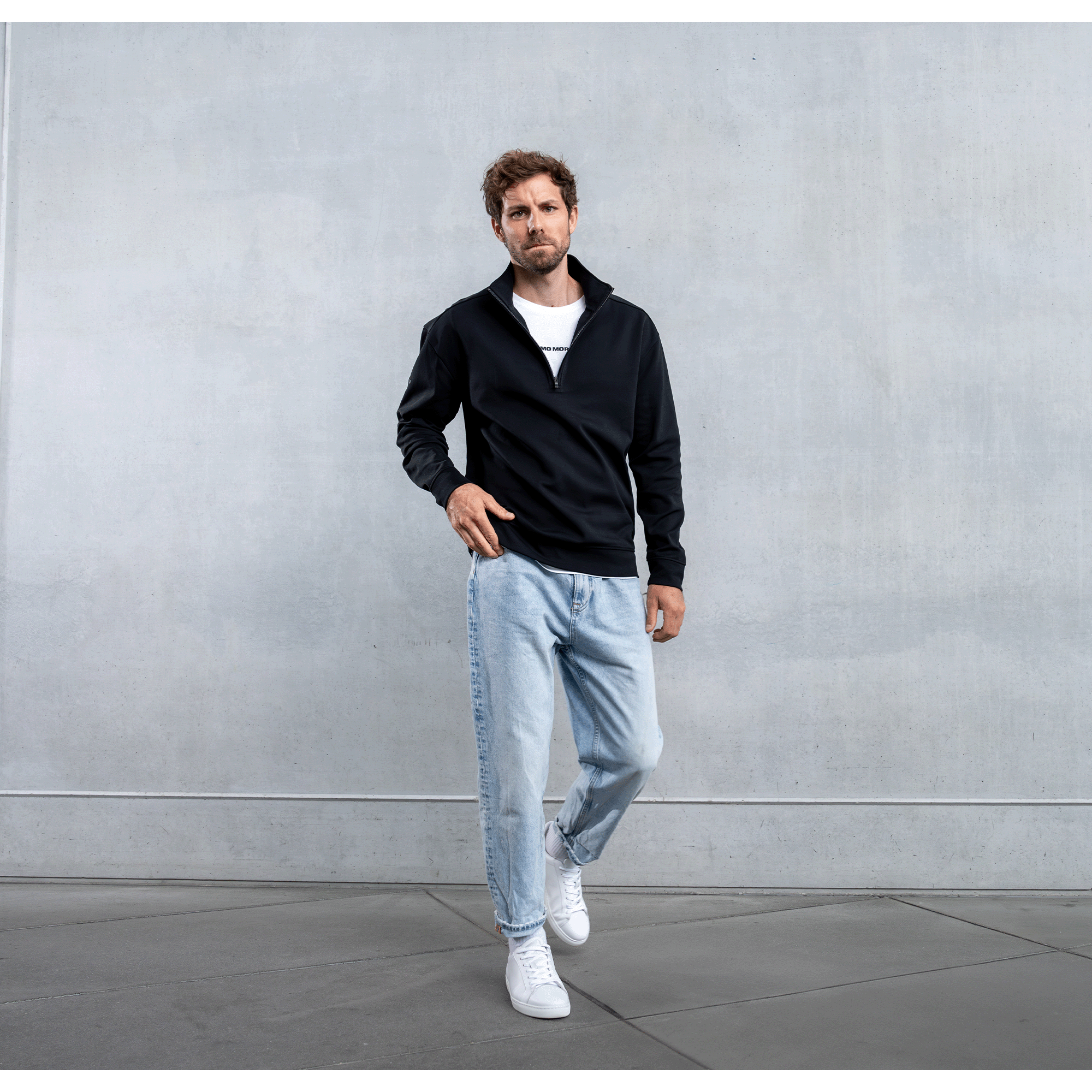 Sportlicher Troyer mit halblangem Reißverschluss und elastischen Bündchen für einen sicheren Sitz. Die lockere Silhouette sorgt für Tragekomfort im Alltag, während das erhabene Gummi-Logo auf der Brust ein dezentes Markenstatement setzt.